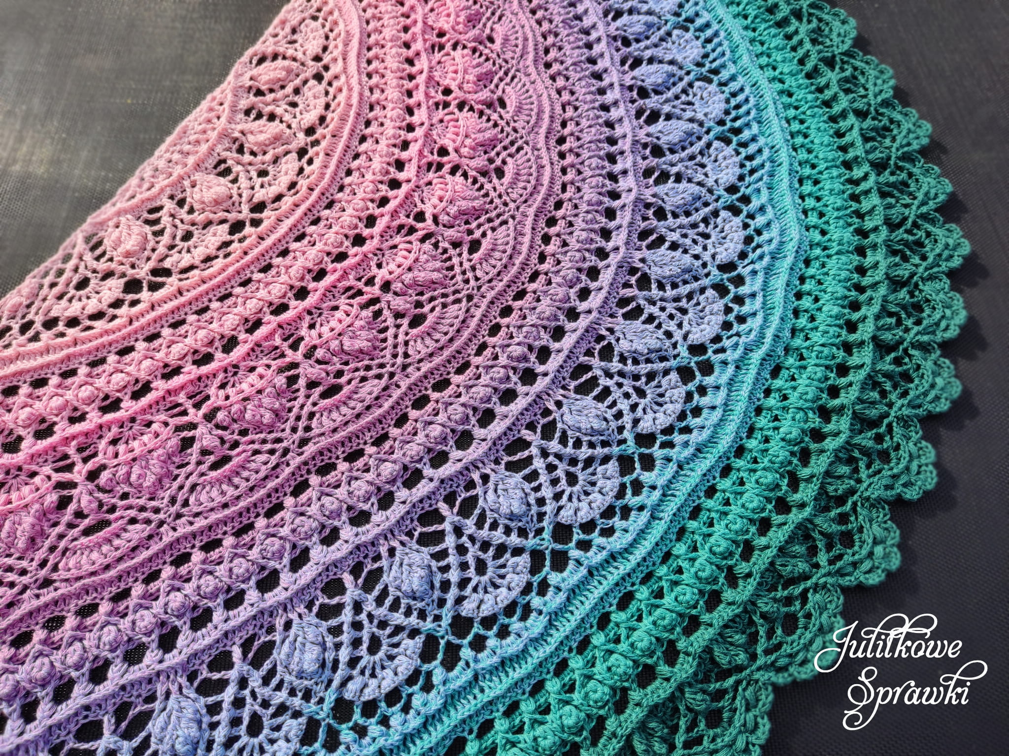Chusta półokrągła na szydełku "Szczęśliwe Chwile"