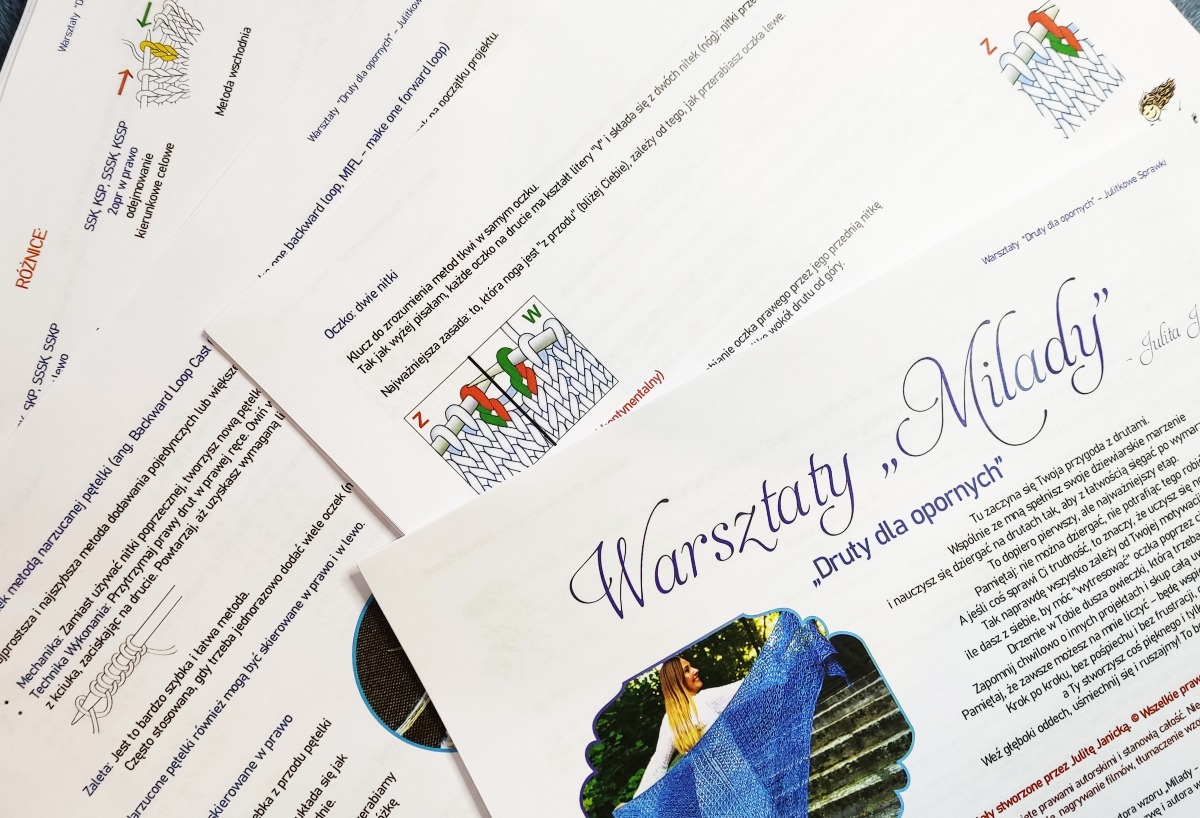- Warsztaty prowadzą Cię przez małe sukcesy, aż do spektakularnego finału, czyli wykonania chusty Milady na drutach.