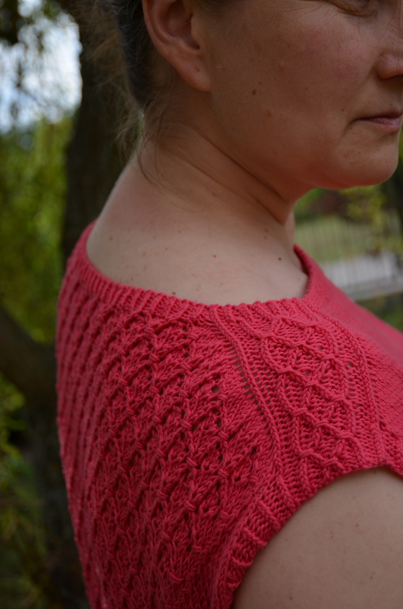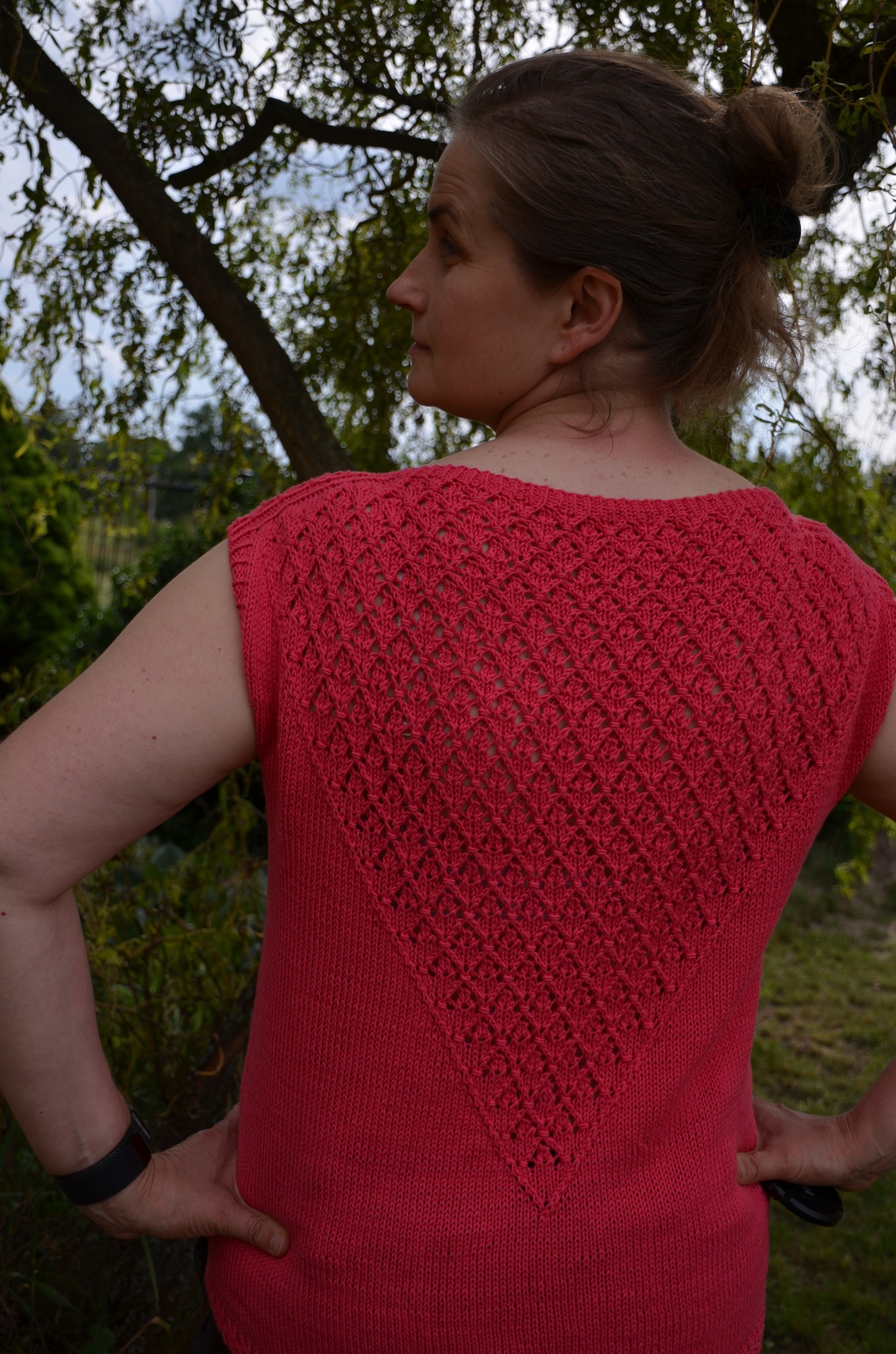 "Oblubienica" / "Fiancée" - wzór na bluzeczkę pagonową na drutach z pięknym, zmysłowym tyłem.