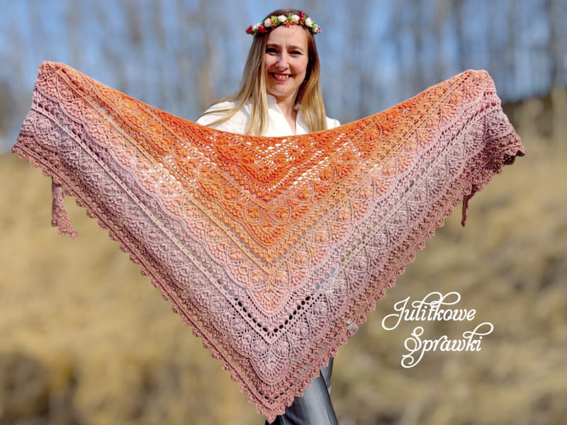 "Rozkwitka" / "Blossom Lady" - wzór na trójkątną chustę na szydełku w wiosennej odsłonie.