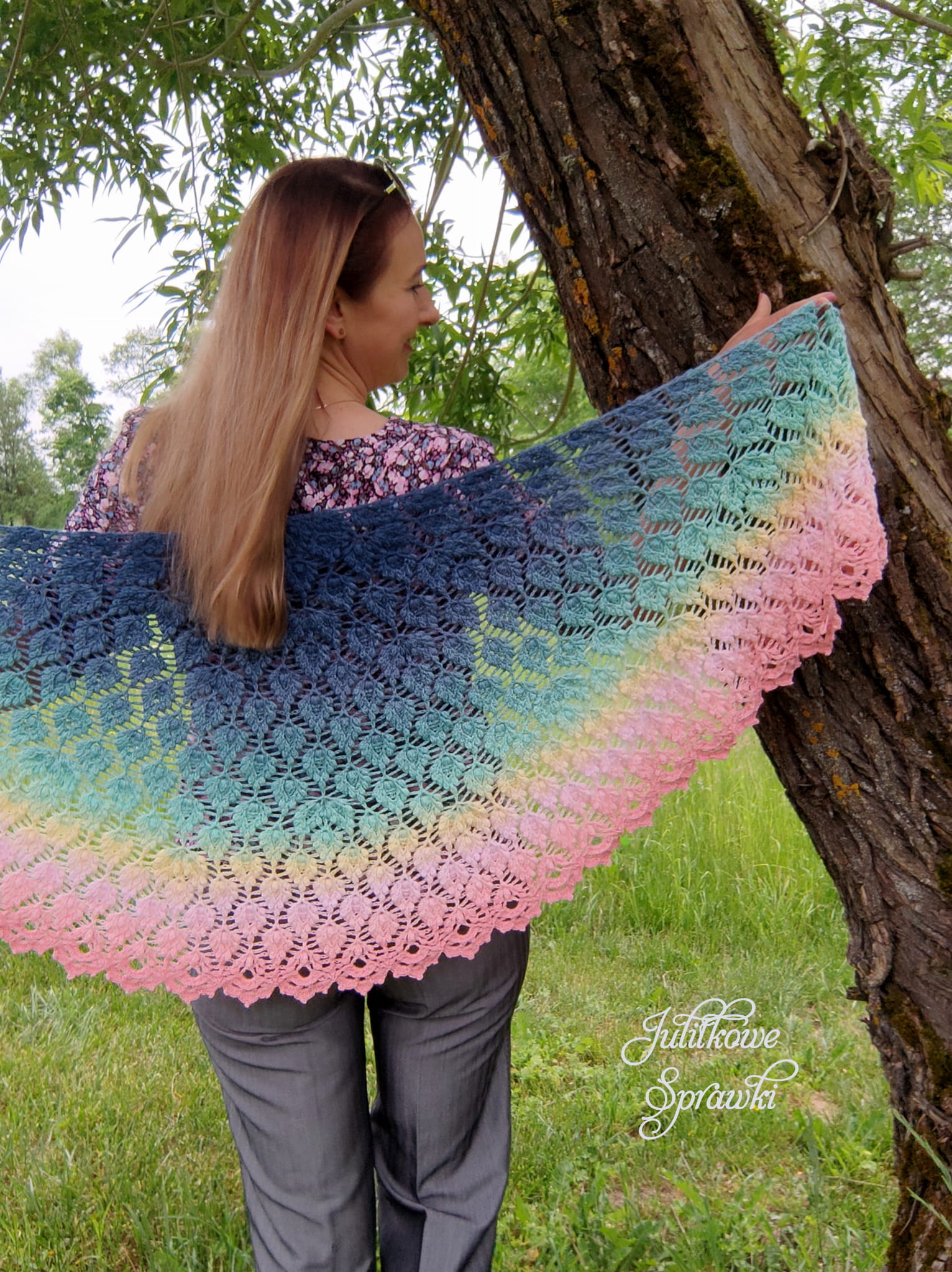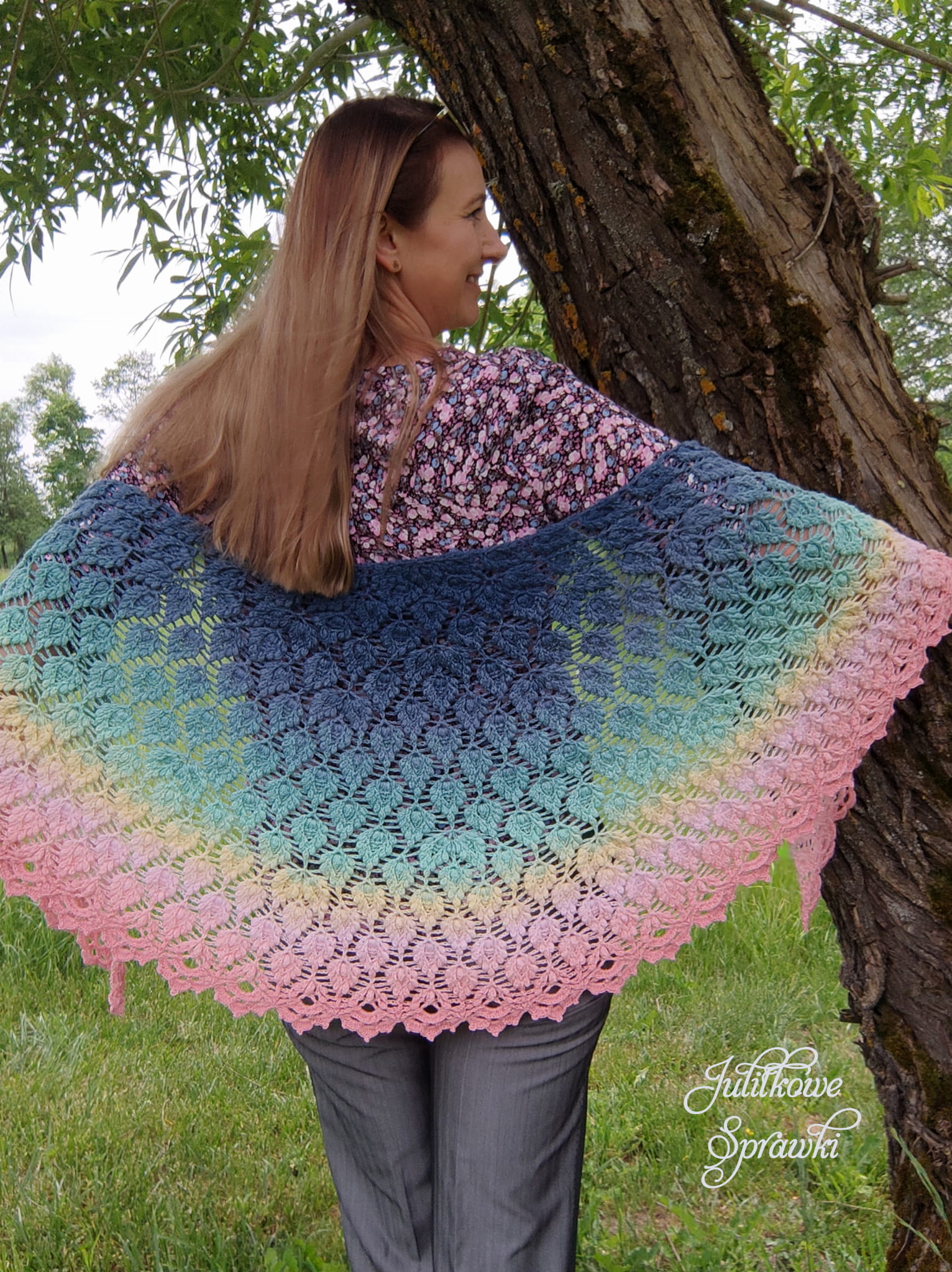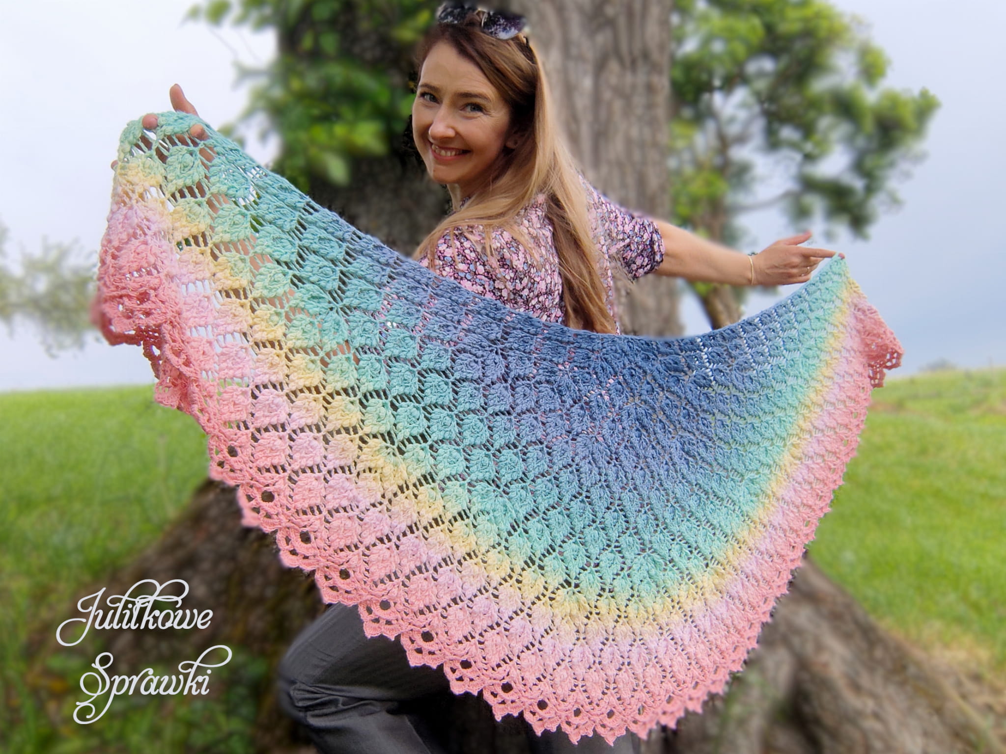 Wzór na półokrągłą chustę na szydełku "Rozkosz Endorfiny" ("Endorphin Bliss").